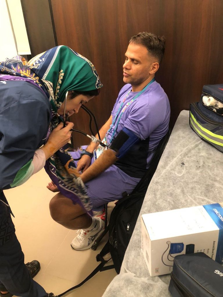 در حالی که تیمهای فوتسال ازبکستان و والیبال ترکیه نیز در همان زمان در حال تمرین بودند، این حادثه باعث شد تا وحید شمسایی، محمد طاهری و کاظم صادقی دچار مشکلات تنفسی و حالت تهوع شوند. وضعیت کاظم صادقی برای دقایقی نگرانکننده بود، اما با تلاش کادر پزشکی، وضعیت او بهبود یافت و مشکل رفع شد. این اتفاق منجر به تأخیر یک و نیم ساعته در تمرین تیم ملی شد.